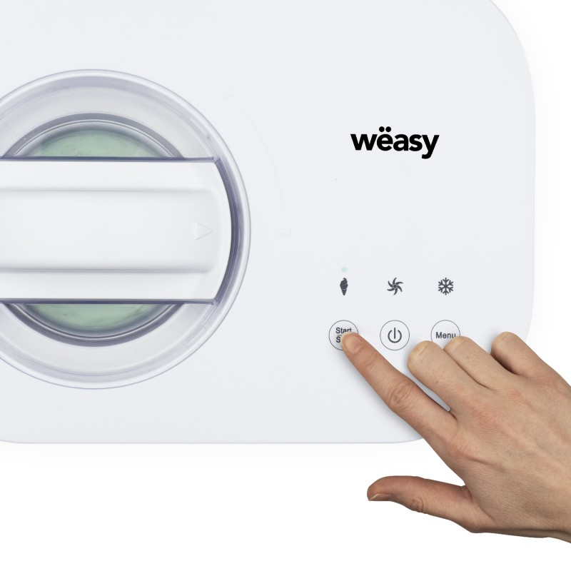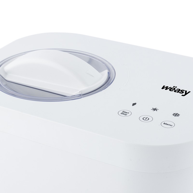 Wëasy Gelatiera YUM135, 1L, Ventola per gelato, Pronta in 60 minuti, Spegnimento automatico, 100W, Pannello touch screen, Funzione Mantenimento freddo, Paletta per gelato e Tazza di misurazione