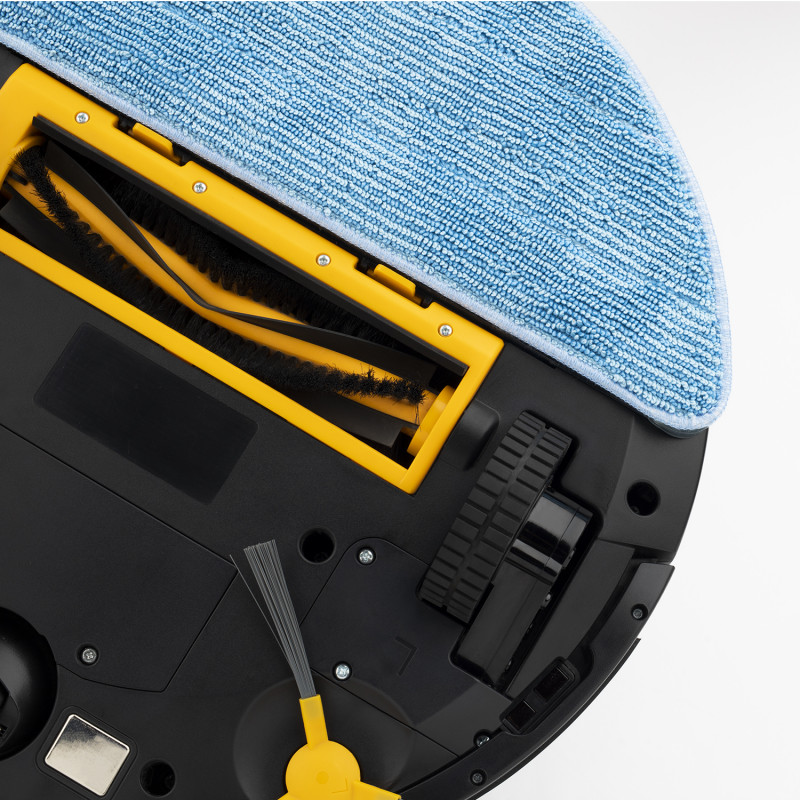 Pulisce tutti i tipi di pavimenti grazie al suo serbatoio d'acqua da 350 ml e al suo panno assorbente in microfibra. Usando i suoi sensori, identifica il vuoto e tutti i detriti, circola facilmente tra i mobili, evita gli ostacoli e passa facilmente in ogni angolo.