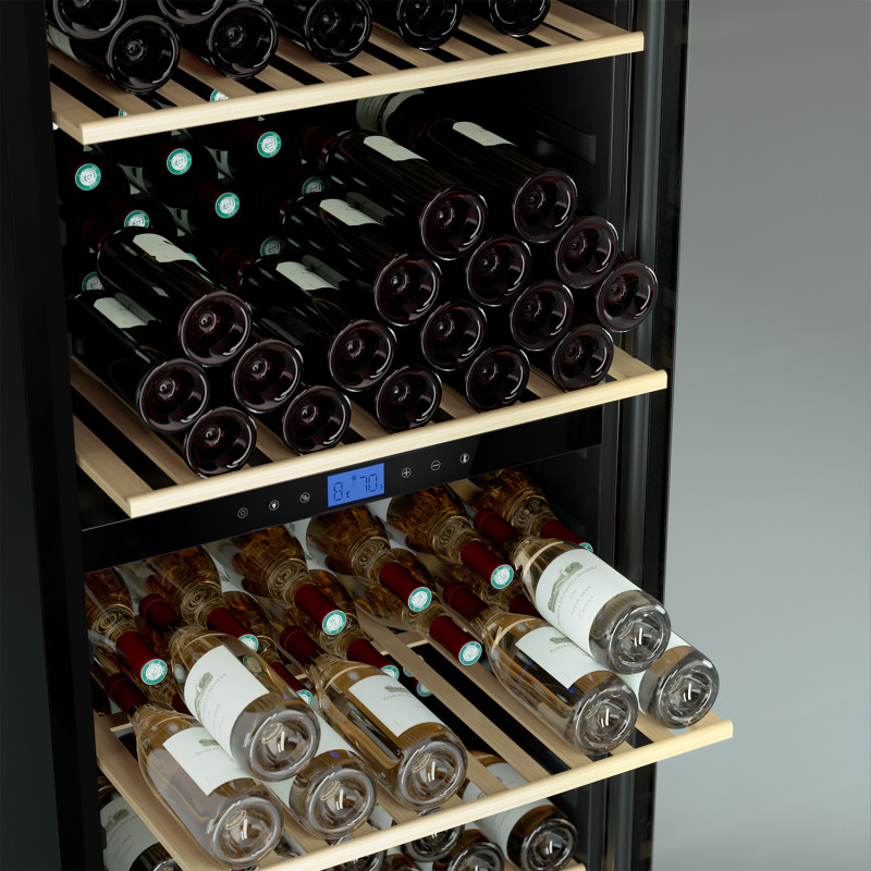 Con la nostra tecnologia avanzata, la cantina CAVCED149 ti consente di conservare e degustare i tuoi vini alla temperatura ideale. Grazie alle 2 zone distinte potrai conservare il vino a temperature diverse. Per esaltare tutti gli aromi durante la degustazione, il vino richiede una temperatura precisa che è possibile regolare grazie al display elettronico. ll suo sistema anti-vibrazione e la sua temperatura stabile consentono al vino di maturare in condizioni ottimali. Il sistema di raffreddamento termoelettrico elimina rumori e vibrazioni. Il suo vetro colorato e la sua illuminazione a LED ti permettono di vedere le tue bottiglie tenendole lontane dalla luce diretta e dai raggi UV. La sua tecnologia silenziosa apporta un ulteriore comfort. Il suo design elegante infine dona un tocco di elegante e raffinato al tuoi interni.