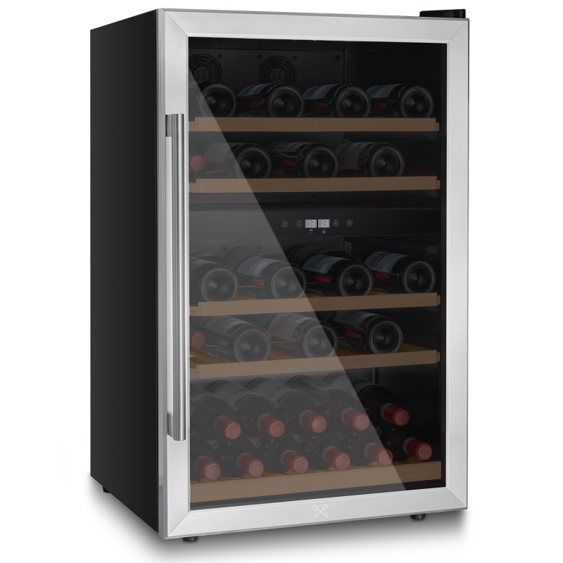 Con la nostra tecnologia avanzata, la cantina ad incasso CAVCED53 ti consente di conservare e degustare i tuoi vini alla temperatura ideale. Questa cantinetta puo’ ospitare fino a 53 bottiglie, con una capacità di 128 litri. Grazie alle 2 zone distinte potrai conservare il vino a temperature diverse. Per esaltare tutti gli aromi durante la degustazione, il vino richiede una temperatura precisa che è possibile regolare grazie al display elettronico tra 5°C e 22°C. ll suo sistema anti-vibrazione e la sua temperatura stabile consentono al vino di maturare in condizioni ottimali. Il sistema di raffreddamento termoelettrico elimina rumori e vibrazioni. Il suo vetro colorato e la sua illuminazione a LED ti permettono di vedere le tue bottiglie tenendole lontane dalla luce diretta e dai raggi UV. La sua tecnologia silenziosa apporta un ulteriore comfort. Il suo design elegante infine dona un tocco raffinato ai tuoi interni.