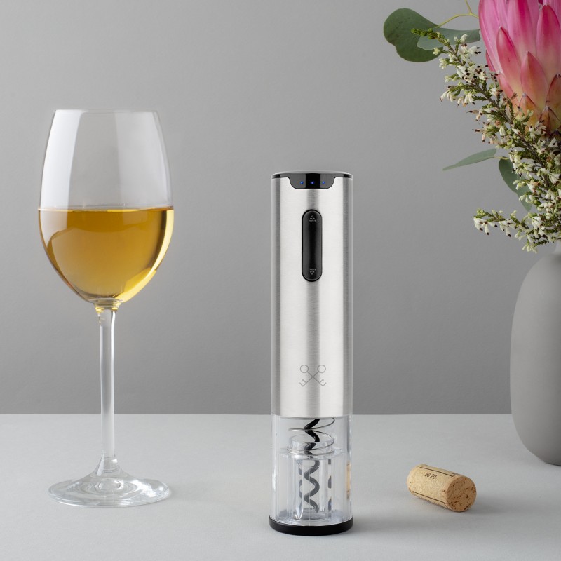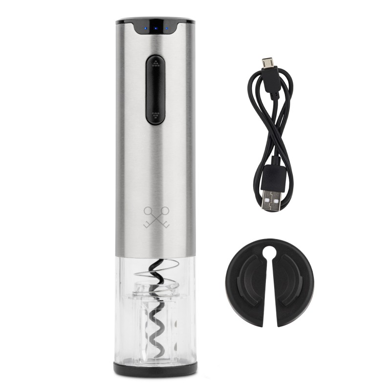 Ricaricabile in soli 30 minuti con un cavo USB, dispone di un tagliacapsule che permette di rimuovere con precisione l'alluminio che ricopre il tappo. Con il suo design in acciaio inox puoi dare un tocco di eleganza alle tue tavole.