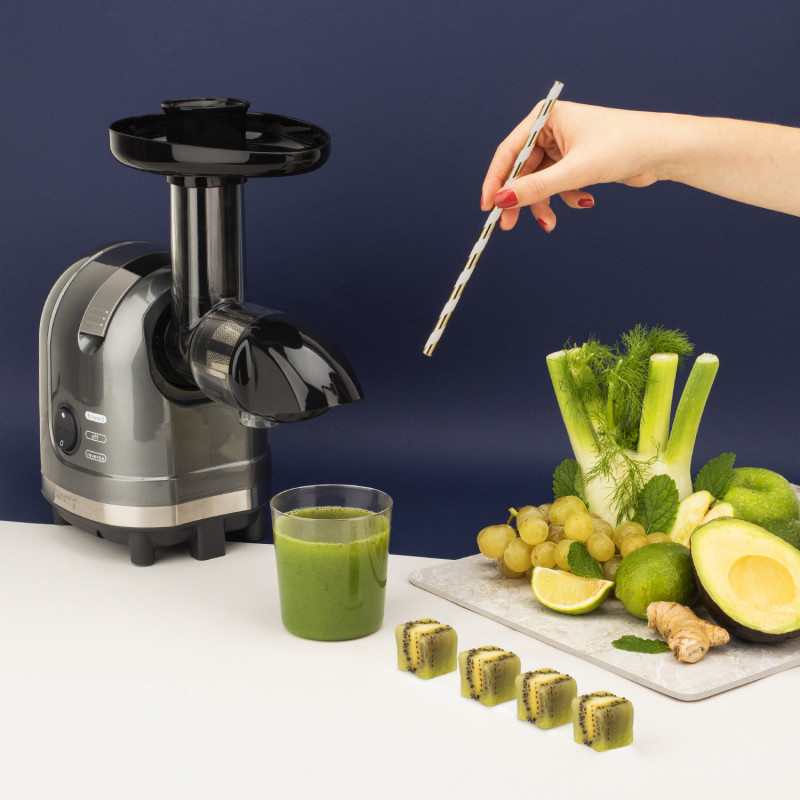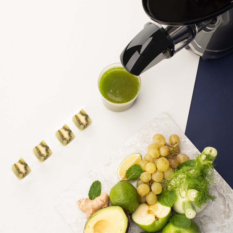 La sua tecnologia a bassa pressione a bassa velocità e le eliche senza lama garantiscono la qualità del succo con il massimo apporto nutrizionale, senza alterare i benefici della frutta e con sprechi minimi.