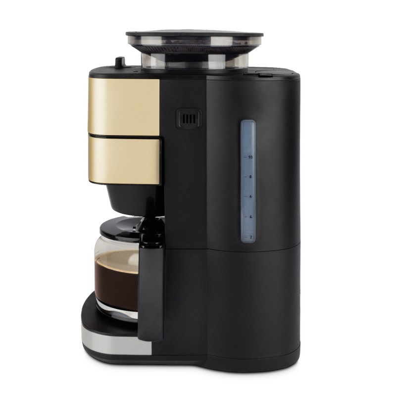 Assaporate l'aroma del caffè con grani freschi appena macinati con la macchina per il caffè MGX90. Performante con una potenza di 1000 watts, la MGX90 è la combinazione di una macchina a caffè con filtri e di un macina caffé.
