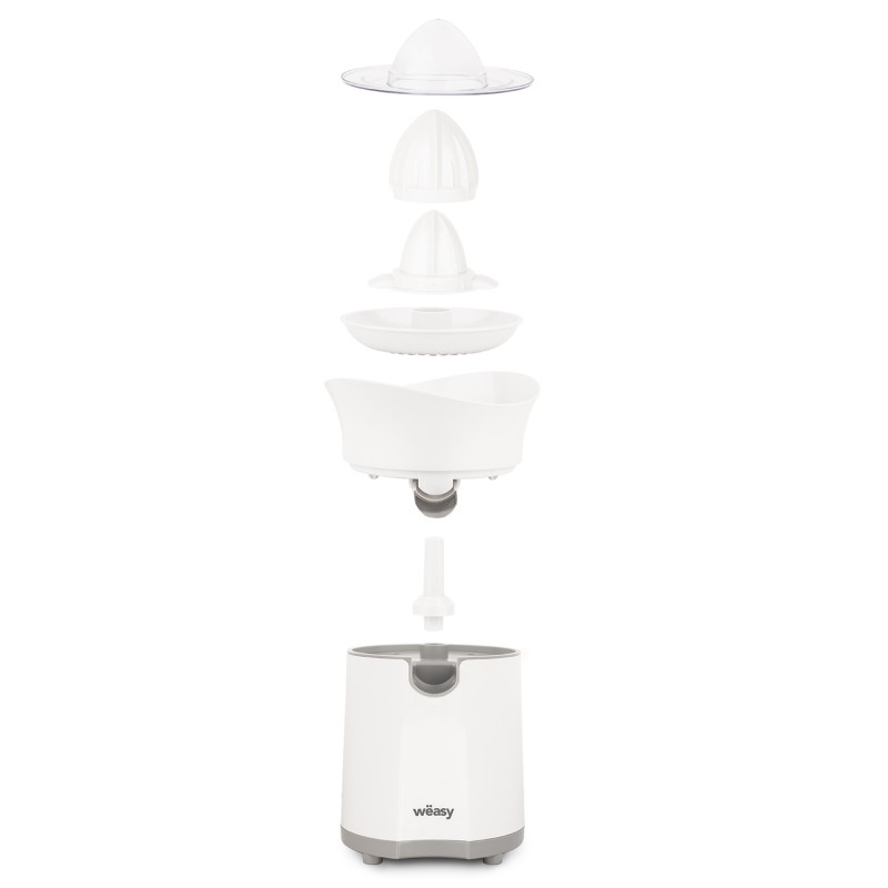 Con i suoi 85 Watt di potenza, lo spremiagrumi elettrico consente di ottenere diversi tipi di succo senza alcuno sforzo.