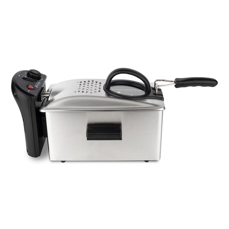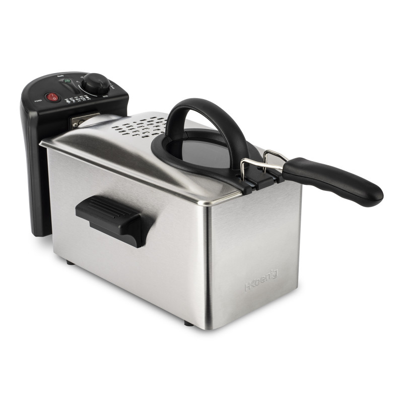 Elemento di design nella tua cucina, é prodotto in acciaio inox. Assorbe gli odori e mantiene pulita l’aria della tua cucina. Utilizza la nuova tecnologia H.Koenig ‘Thermix’ con termostato regolabile, la friggitrice mantiene il livello di temperatura all’interno del cestello. Attraverso la pratica finestrella trasparente, puoi controllare il livello di frittura dei tuoi cibi.