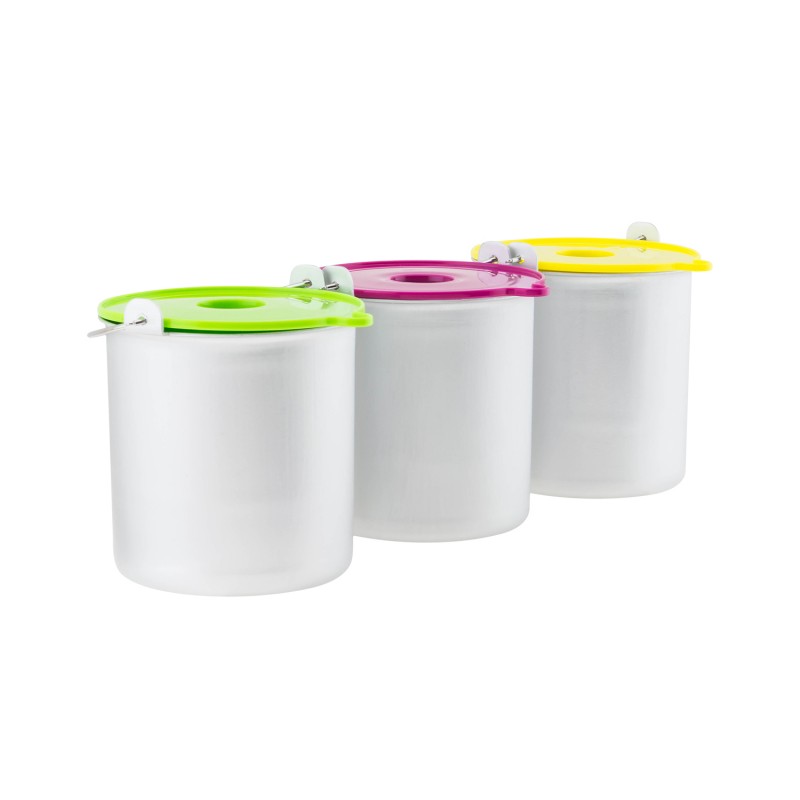Con questi 3 contenitori per la preparazione, potrete conservare il gelato. E' possibile riporre il contenitore direttamente nel congelatore.I coperchi con colori fluo permettono di identificare facilmente sapori diversi. SPECIFICHE: