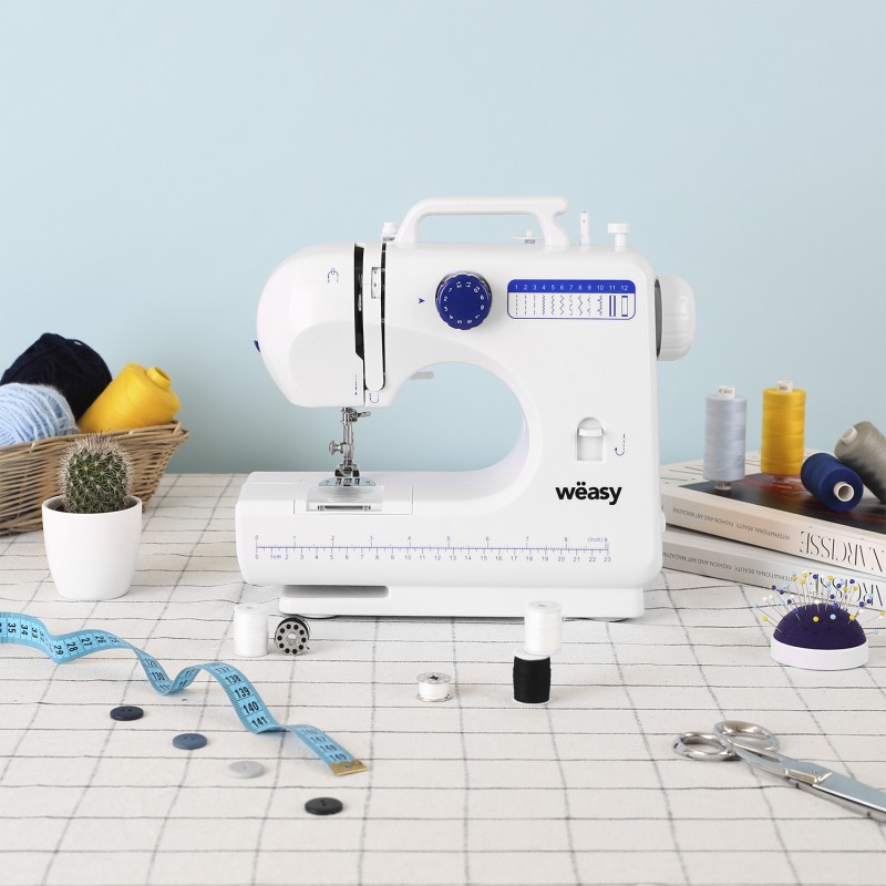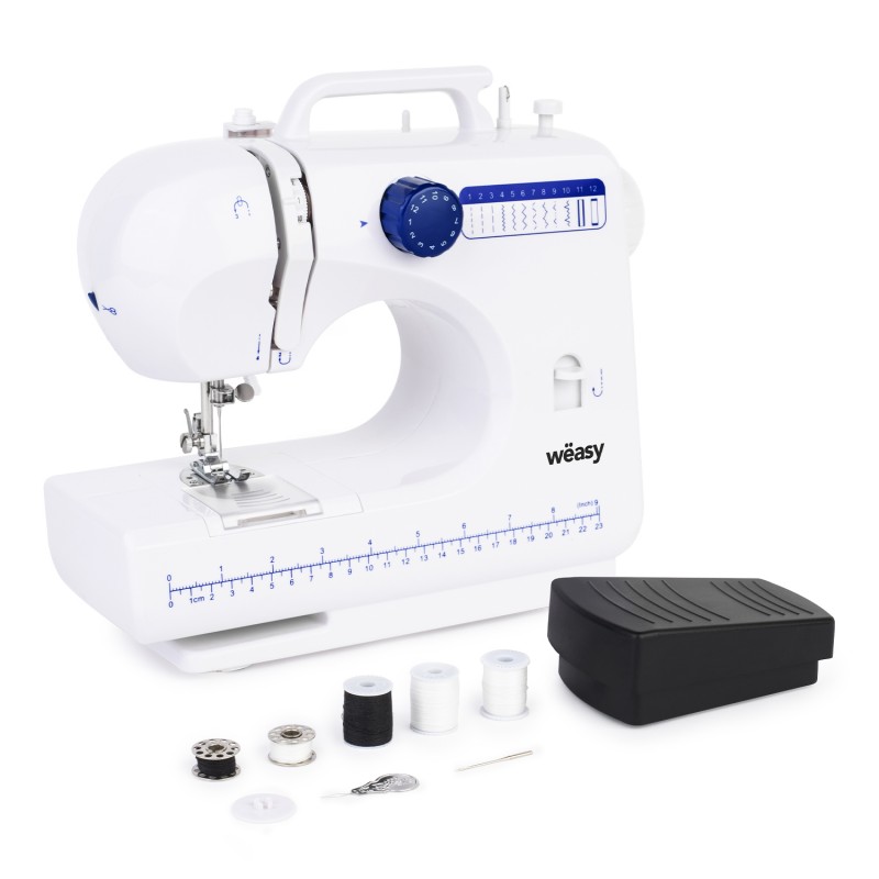 Con la macchina da cucire Weasy SW45, lasciate spazio alla vostra immaginazione. Perfetto per i giovani designer di moda e facile da usare, sviluppa i tuoi talenti di cucito grazie alla SW45. La macchina da cucire ha 12 punti incorporati tra cui il piede zig zag. La lunghezza del punto può essere regolata fino a 3,5 mm. Il braccio libero è stato progettato per la cucitura in zone difficili da raggiungere (maniche, pantaloni, ecc.). la filettatura e la taglierina sono ottimizzati per un uso semplificato. Dai vita alle tue creazioni con la macchina da cucire Weasy SW45.