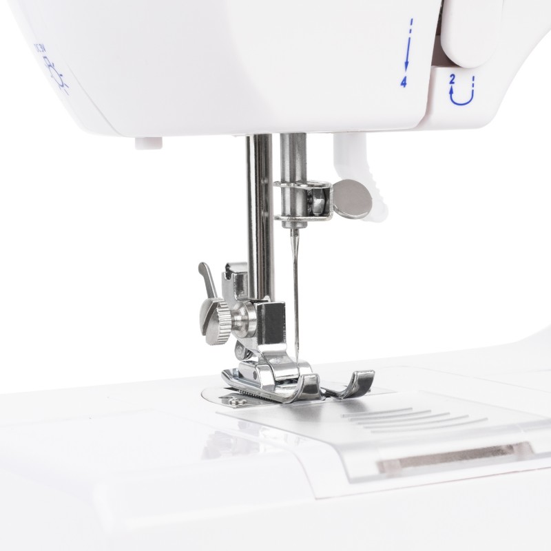 Lunghezza punto regolabile da 2,8 mm a 3,5 mm. Funzione di cucitura in avanti e indietro