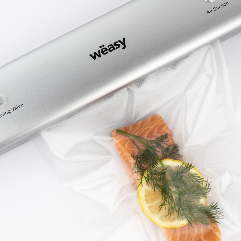 Facile da usare, il dispositivo per sottovuoto SIL85 permette di evacuare l'aria e di condizionare il cibo secco o umido in confezioni ermetiche in soli 10 secondi. Elimina il rischio di ossidazione e favorisce la conservazione a lungo termine. Anticipa e conserva gli alimenti nel frigorifero o nel congelatore senza alterare il valore nutrizionale né il sapore. Evita gli sprechi, puoi mantenere ciò che non viene consumato e riutilizzare i suoi 10 sacchetti sottovuoto lavabili 20 x 30 cmpact, il dispositivo si inserisce facilmente in un cassetto o nell'armadio della tua cucina.