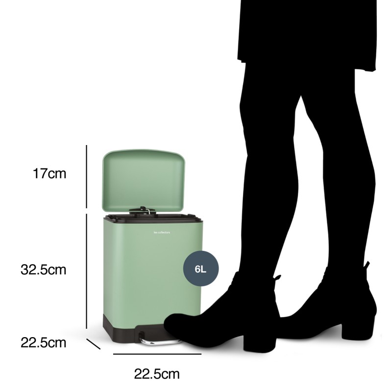 Pattumiera da bagno a pedale in acciaio inox n ° 682 Capacità 6 L, compatta, cestino estraibile , design elegante con Finitura opaca, resistente, chiusura silenziosa del coperchio, Verde chiaro