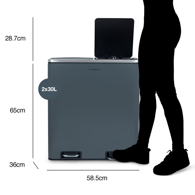 Pattumiera per raccolta differenziata dei rifiuti N°908, Blu Notte mat, a pedale con 2 scomparti - Les Collectors