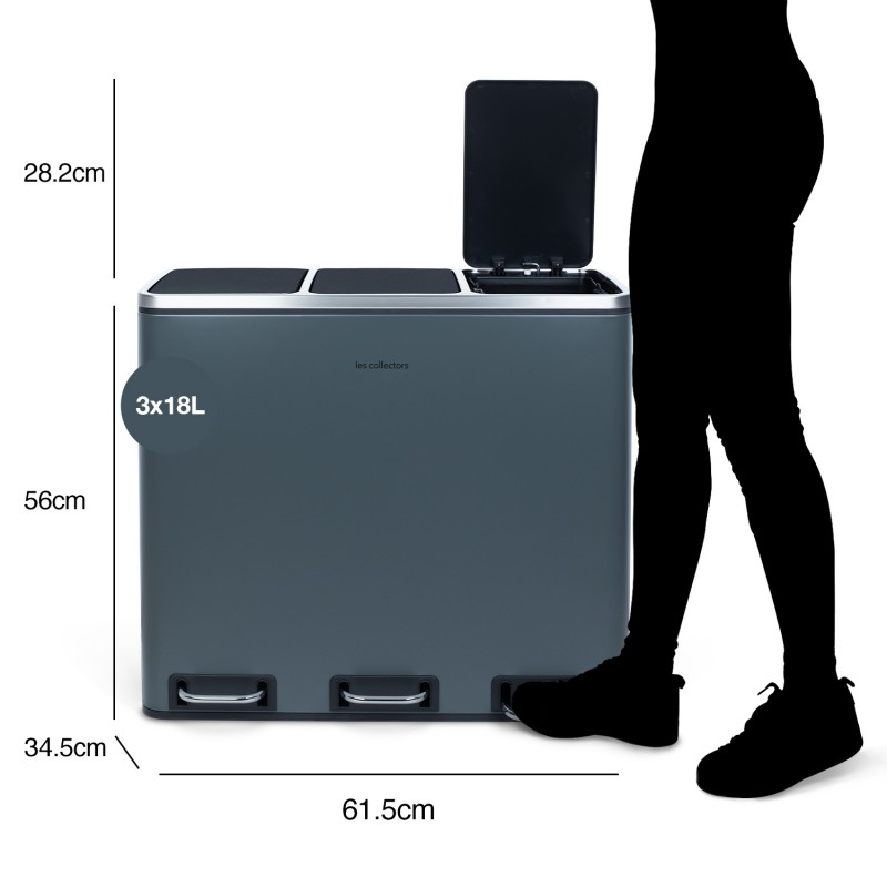 Pattumiera per raccolta differenziata dei rifiuti N°908, Blu Notte mat, a pedale con 2 scomparti - Les Collectors
