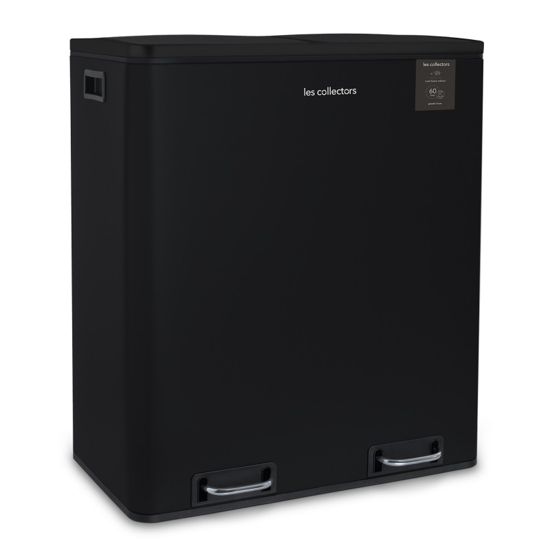 Pattumiera per raccolta differenziata dei rifiuti N°910, Nero Mat, a pedale con 2 scomparti separati - Les Collectors