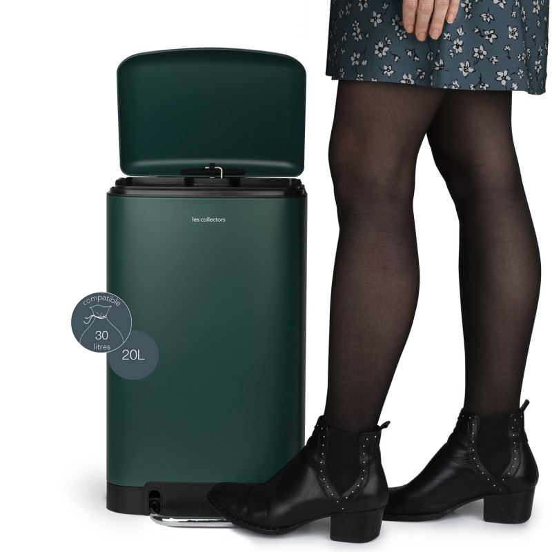 Les Collectors Pattumiera da cucina a pedale N°501, con struttura in acciaio inox, colore Verde Scuro, Capacità 20L, Contenitore interno rimovibile, Finitura opaca, Resistente, Coperchio con chiusura silenziosa