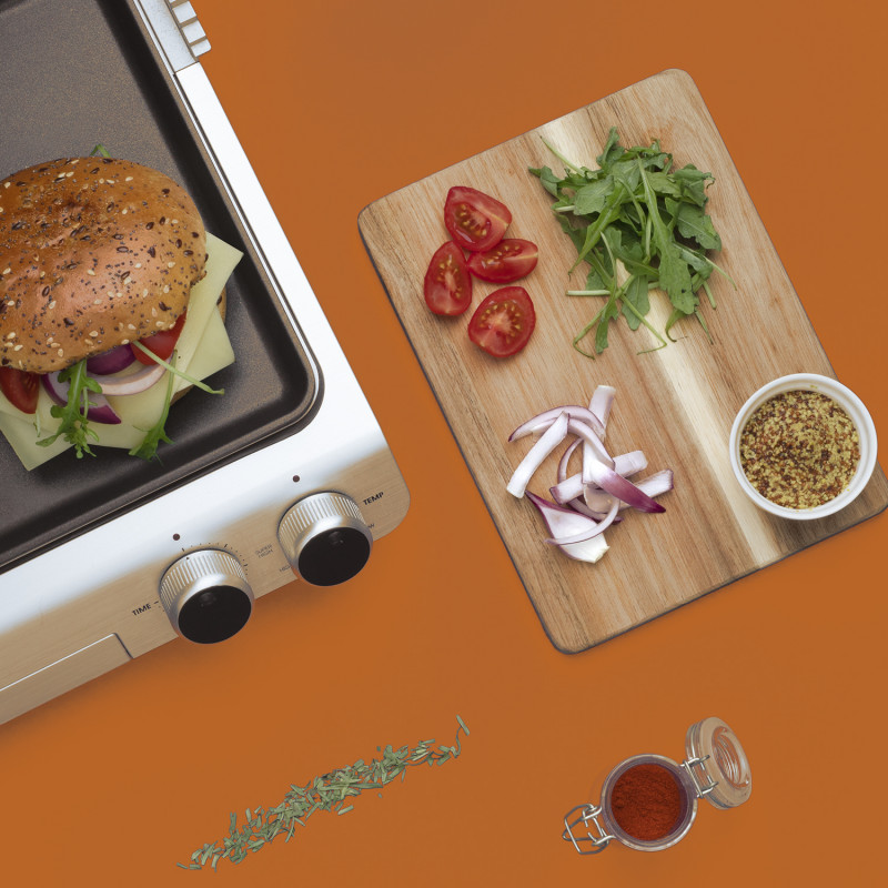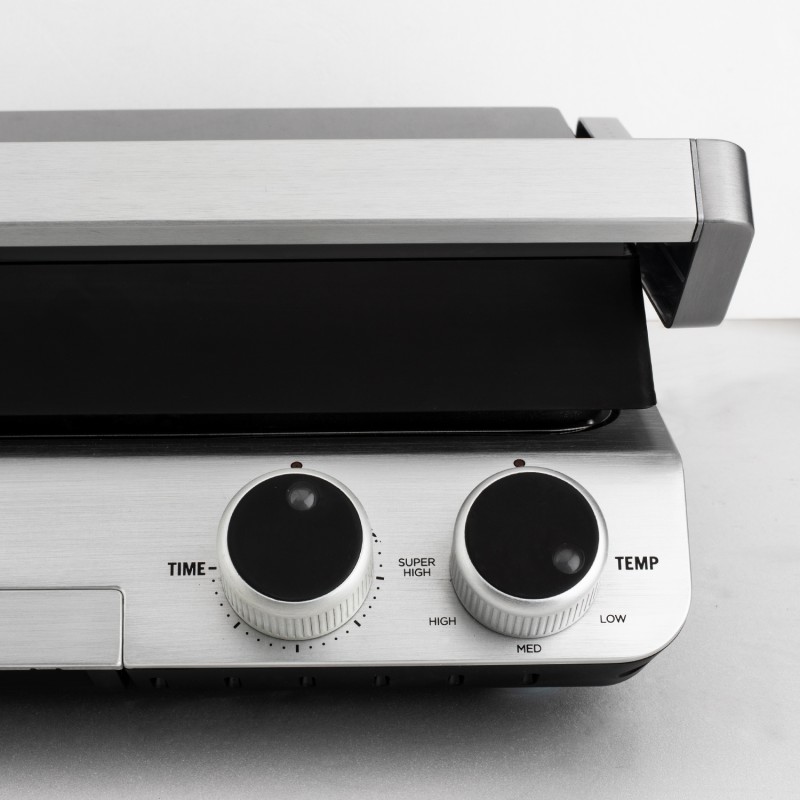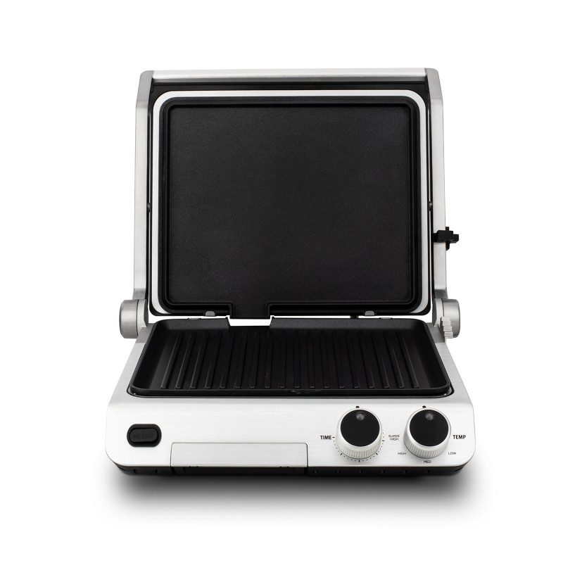 Grazie al regolatore di altezza e l'apertura a 180° vi darà modo di grigliare qualsiasi tipo di alimento. Potrai riscladare eccellenti panini e pizzette, e piu ancora grazie alla superfice di cottura di 30x25 cm; non dovrete piu controllare la corrura grazie al suo timer e termostato regolabile