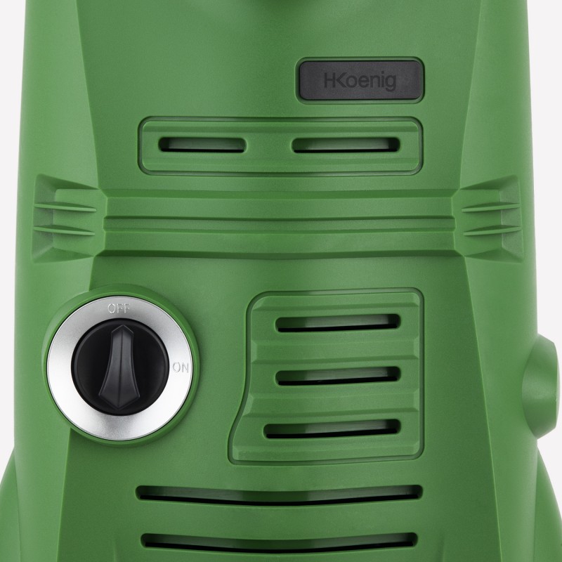 L'idropulitore a pressione HWP5 di H.Koenig consente di pulire efficacemente tutte le superfici grazie al suo potente getto da 120 bar, alla portata di 380 litri/ora e a 1700 watt di potenza.