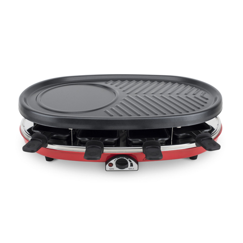 • Piastra per pancake. Potente con i suoi 1500 W, include 8 padelle raclette con rivestimento antiaderente per una pulizia facile e veloce. Ideale per serate in compagnia con famiglia o gli amici!