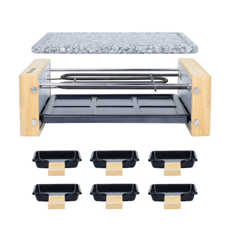 Raclette con piastra di cottura in pietra per 6 persone - design legno