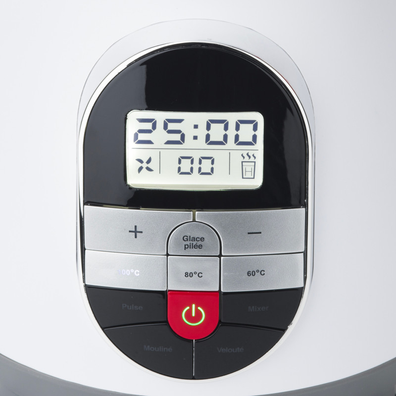 Versatile, potrai scegliere la morbidezza delle vostre preparazioni grazie al suo mixer a tre velocità, alla sua funzione pulse o cottura di 60 ° C, 80 ° C e 100 ° C. È anche possibile cucinare le verdure senza mescolarle.