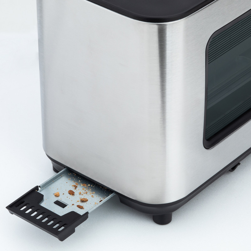 Il suo vetro protettivo e il vassoio raccoglibriciole rimovibile ti permettono di farlo facilmente pulire il dispositivo. Il tostapane con finestra trasparente VIEW7 darà un tocco vintage alla tua cucina!