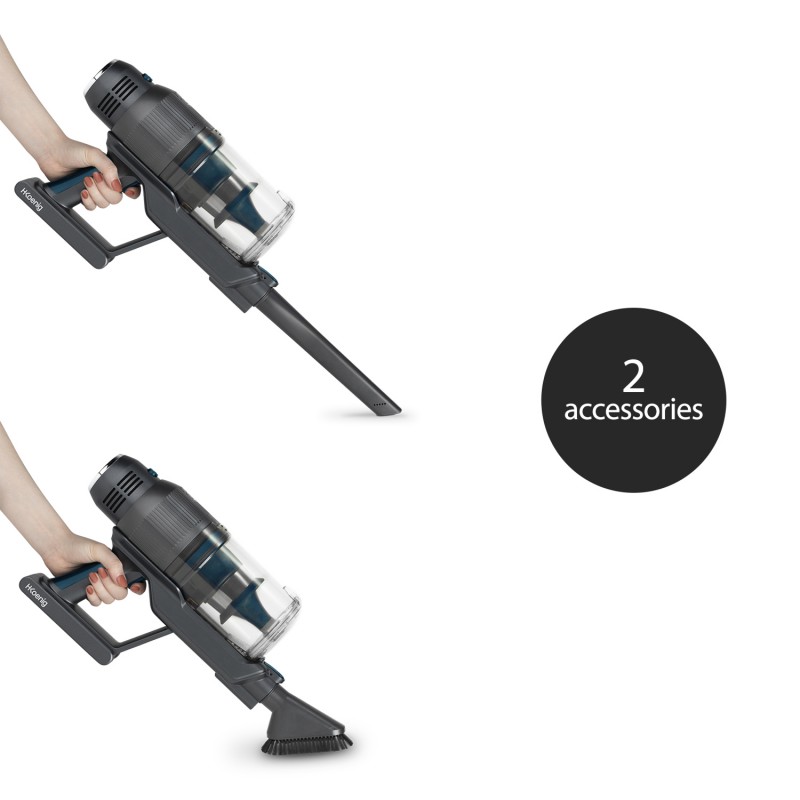 La sua spazzola le permette di rimanere in posizione verticale senza supporto, semplificando la sistemazione e il suo utilizzo quotidiano. Grazie ai suoi accessori, la pulizia degli spazi della vostra casa di più difficile accesso non saranno più un problema: scaffali, sopra gli armadi,sotto i mobili e gli angoli più difficili saranno ora facilmente raggiungibili.
